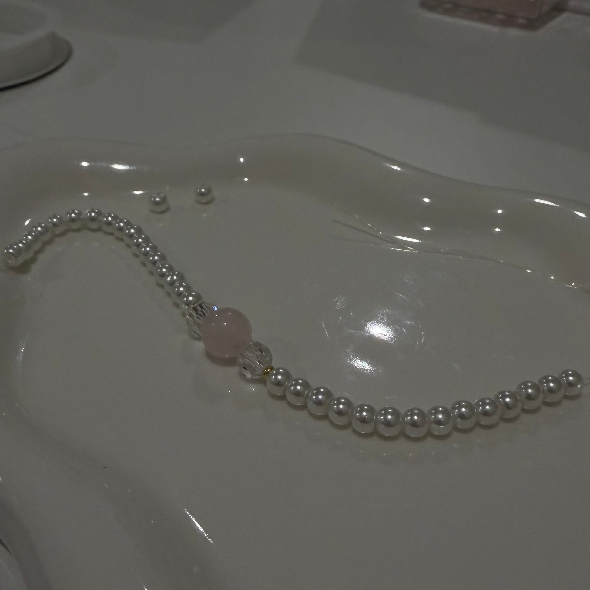 - Handmade with genuine rose quartz, pearls, and crystal accents
